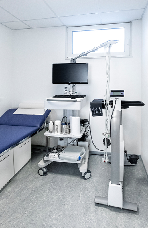 Im Oktober 2020 wurde unser Praxisanbau mit weiteren Räumlichkeiten fertiggestellt. In diesem befinden sich nun Sonographie (Ultraschall), EKG/Belastungs-EKG, sowie ein weiterer Behandlungsraum. Die räumliche Erweiterung soll durch einen reibungsloseren Ablauf kürzere Wartezeiten ermöglichen. Außerdem sorgt eine bessere Verteilung der Praxisbesucher*innen für eine optimale Einhaltung erforderlicher Sicherheitsabstände.